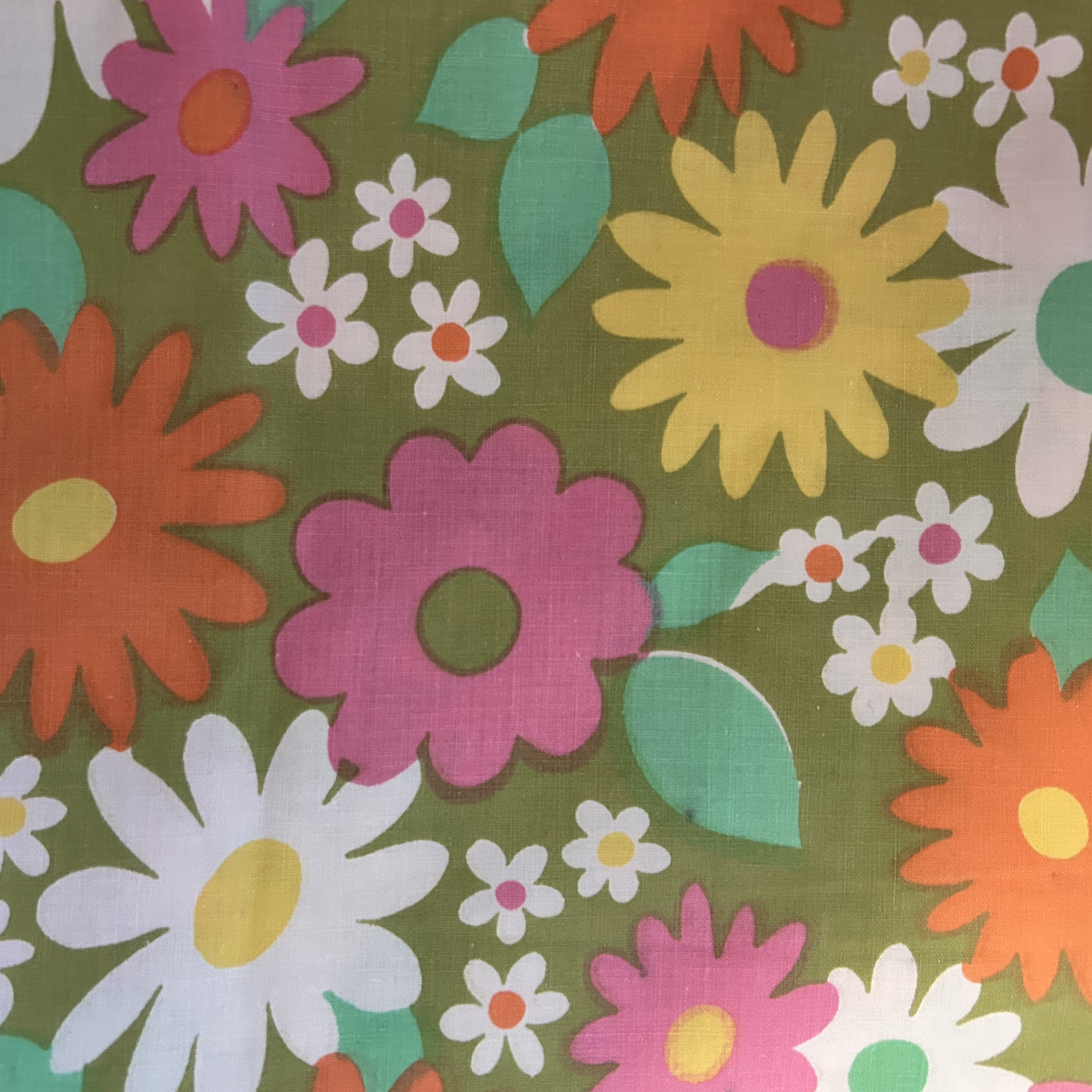 Preloved flatsheet, gorgeous bright colours printed onto a khaki background