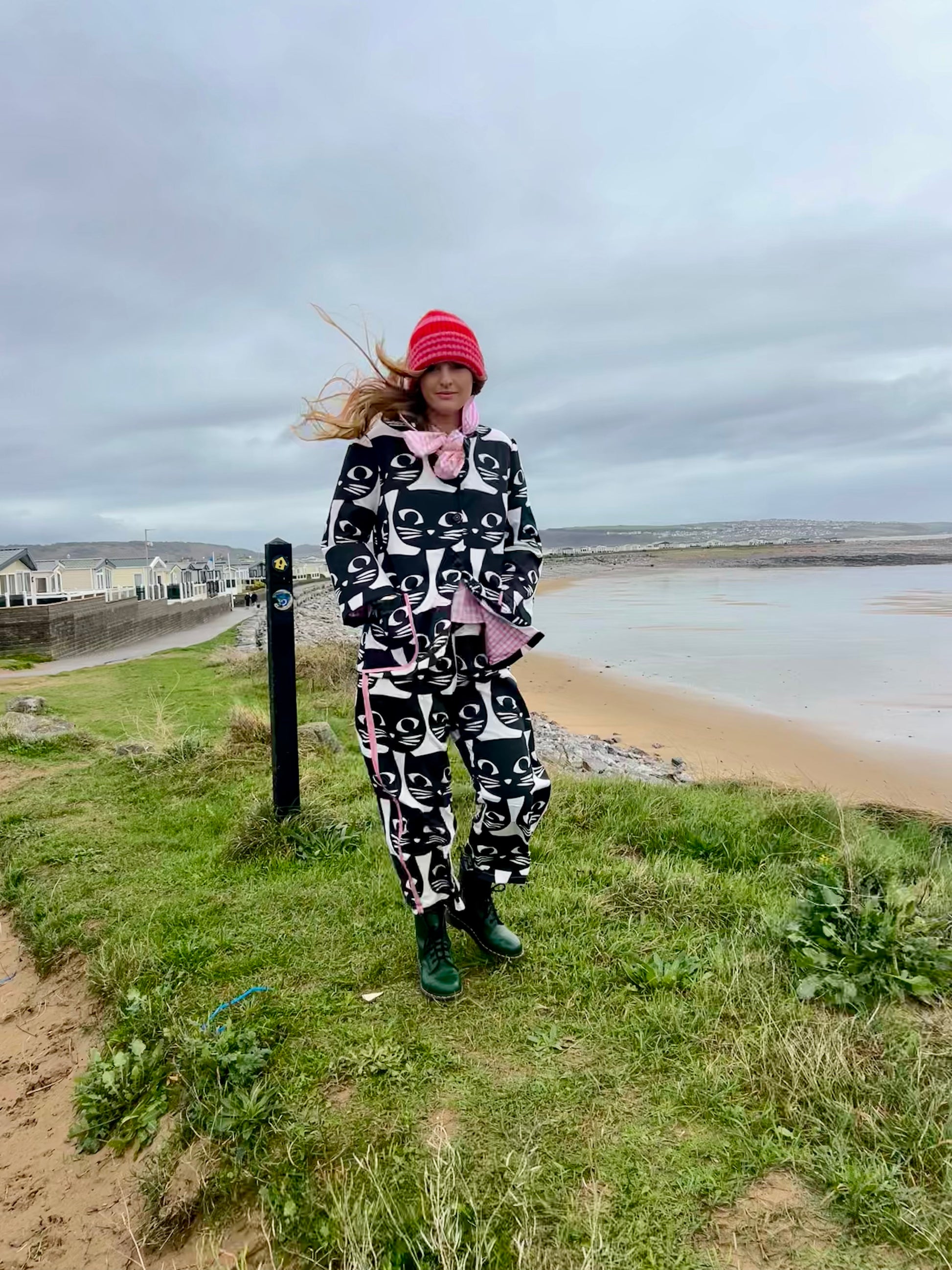 This retro style is based on a 50’s house coat with its 3/4 trumpet sleeves and semi fitted silhouette. This jacket is perfect for that extra layer when the evenings get a chilly or you just need a warm cosy hug.