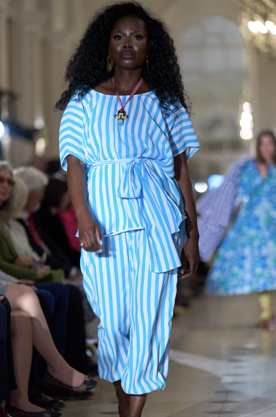 Our new Agatha set is a manifesto of colour, confidence and joy. It has a loose cape, a V-neck back and round neck front though it can be worn either way. The belt can be worn over or under the cape so there are many options to style this as you choose. Baggy trousers with elasticated waist and side pockets.