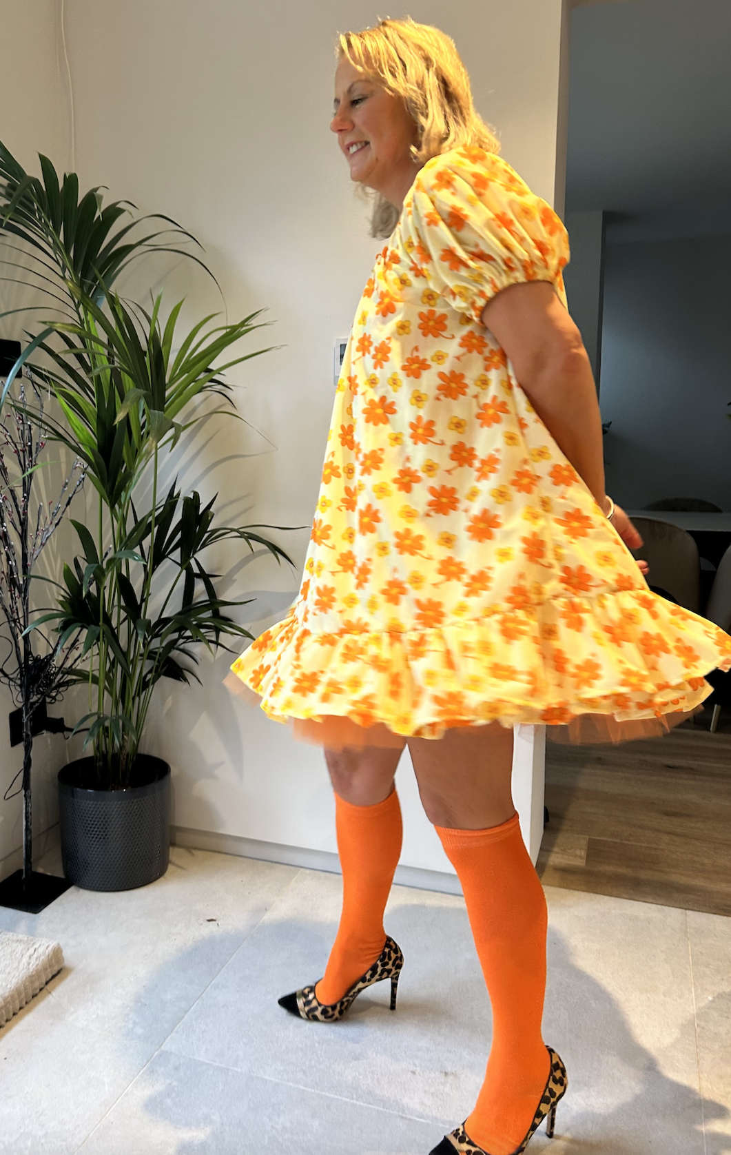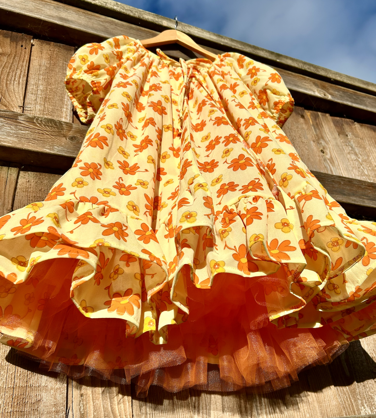 Our fabulously fun, fluffy and frilly Fifi set is made from two seperate garments - a full, strappy petticoat with a deep hem frill and a raglan sleeve over jacket with puff sleeves and a tie at the neck. There are lots of hem frills on each layer to create the fabulous silhouette.