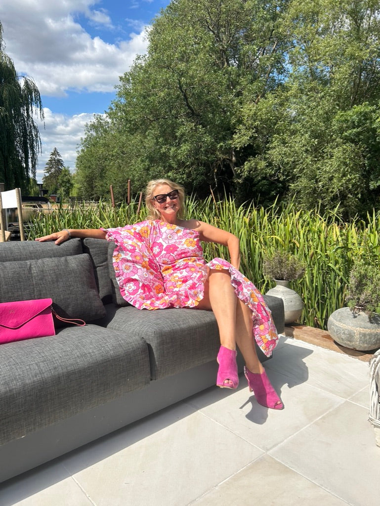 Penelope is a fabulously elegant 70s inspired asymmetric style with a frilled cape sleeve. The narrow frill around the hem gives the fabric extra weight to make it even more swishy. This style gives off Penelope Kieth vibes in ‘The Good life’ and ‘To the Manor Born’.
